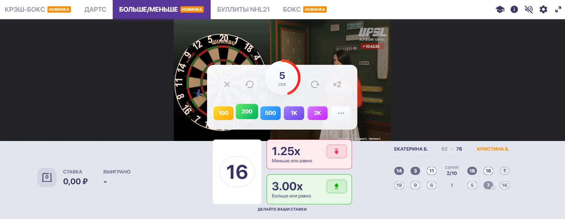 Больше/Меньше от Winline: дартс без тормозов