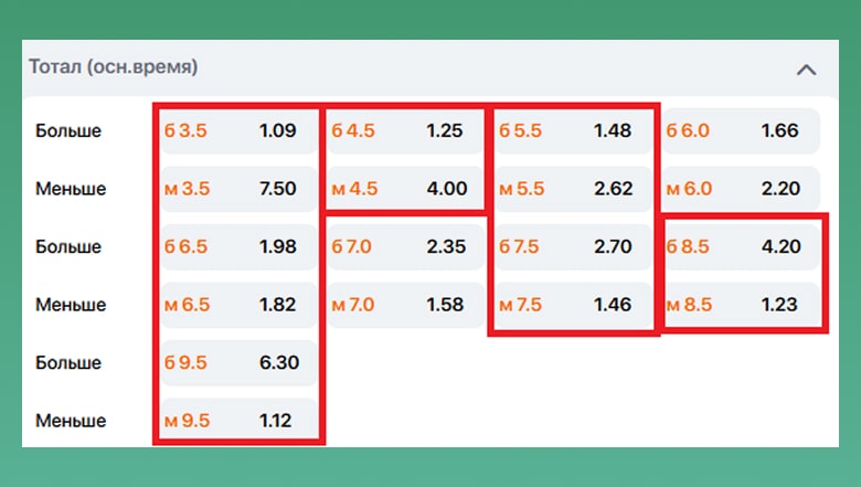 - Много вариантов. Есть и азиатские тоталы, и индивидуальные, и на периоды. Как выбрать — решай по настроению.