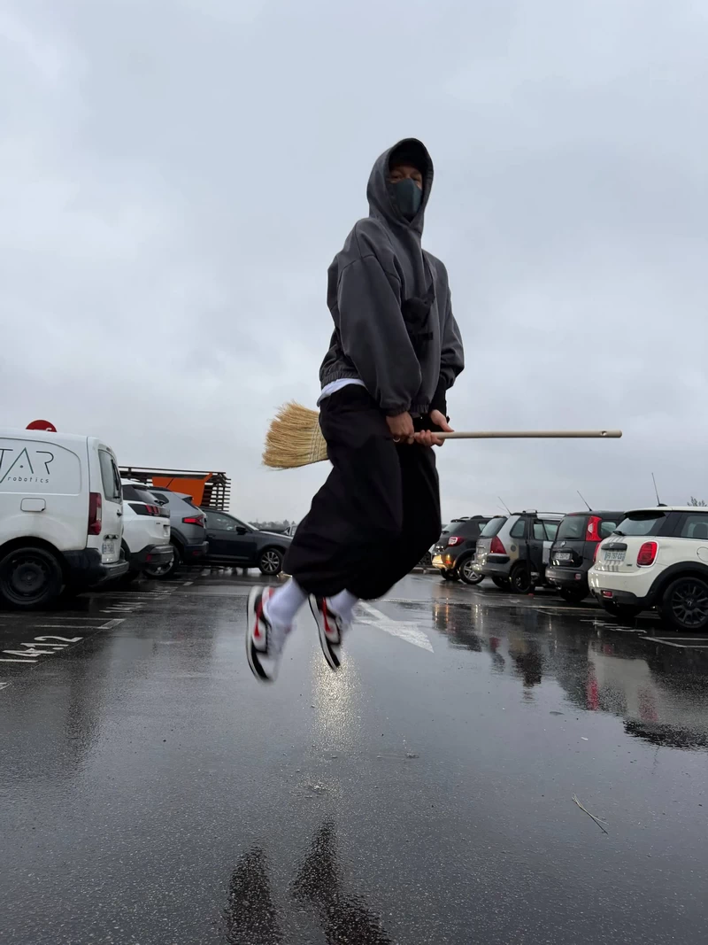 Свой пост Матвей снабдил фотографией. На снимке он «завис» в воздухе верхом на метле.