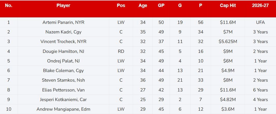 Аналитики TSN подчеркнули исключительный статус Панарина, отметив, что его влияние на игру настолько велико, что они даже рассматривали возможность присвоить ему сразу три первые позиции рейтинга. Это подчёркивает не только его текущую форму, но и высокий спрос со стороны других команд, несмотря на возраст и размер зарплаты.