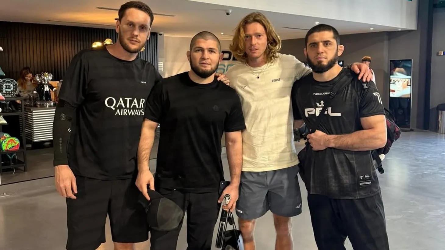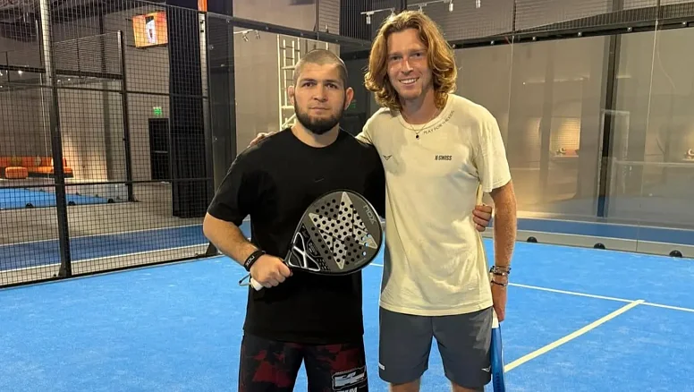 Российский теннисист Андрей Рублев, занимающий 15-ю строчку в мировом рейтинге Ассоциации теннисистов-профессионалов (АТР), провел тренировку по паделу в Дубае. Его партнерами по корту стали известные бойцы смешанных единоборств: экс-чемпион UFC Хабиб Нурмагомедов и действующий чемпион UFC в легком весе Ислам Махачев.