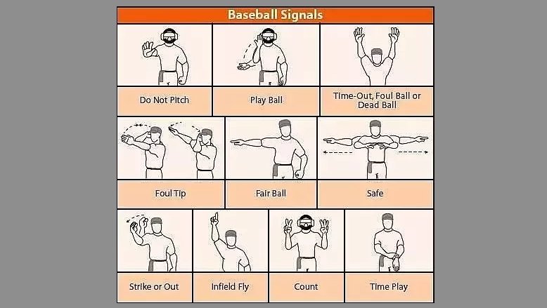 Поднятая правая рука: Этот жест обозначает забастовку, когда мяч, брошенный питчером, не считается правильным.
